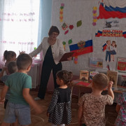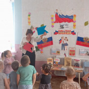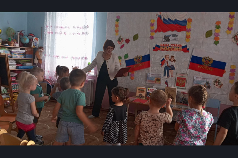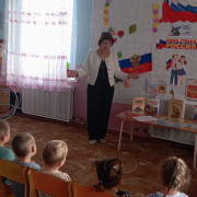 Библиотекарь Метелевской сельской библиотеки посетила детский сад «Колокольчик». Для воспитанников детсада прошёл патриотический час «Россия – это мы».